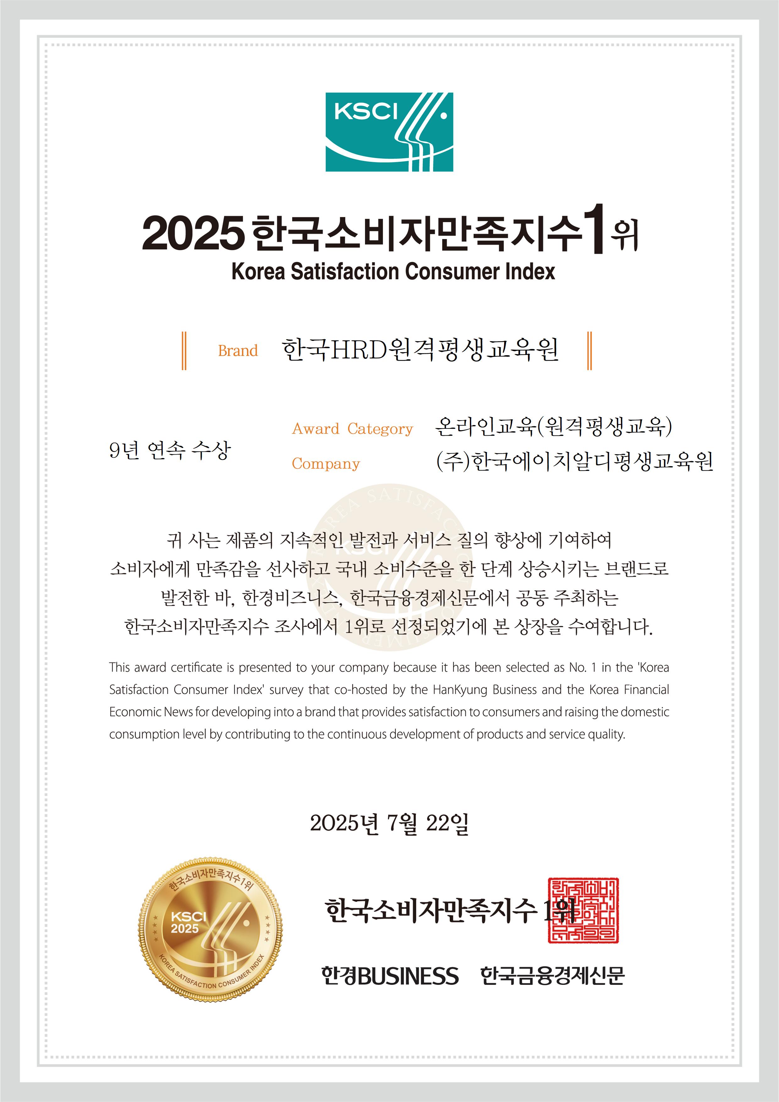 9년연속 온라인교육부분 한국소비자만족지수 1위를 수상하였습니다.